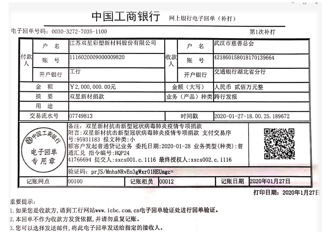 Recently, the novel coronavirus pneumonia in Wuhan, Hubei Province and other places has touched the hearts of the whole country. Double Star New Materials attaches great importance to it, actively responds to the national call, works together to prevent and control the epidemic. On January 27, Doublestar New Material donated 2 million yuan to Wuhan Charity Federation, which was specially used to fight against the novel coronavirus pneumonia epidemic, fully supported the fight against the epidemic, and contributed to winning the war.