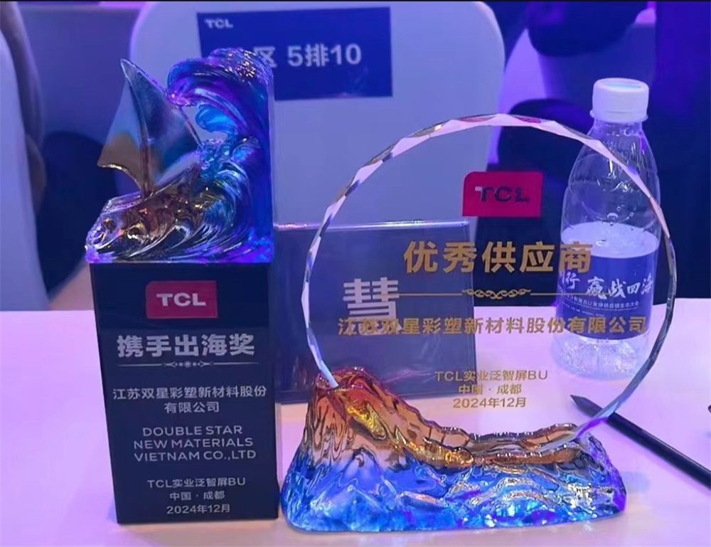 2024年12月6日,在TCL“聚勢同行,贏戰(zhàn)四海”2024年TCL實業(yè)泛智屏BU全球供應(yīng)鏈生態(tài)大會,雙星新材在貴司供應(yīng)商年度評價中,被評為“攜手出海獎”、“優(yōu)秀供應(yīng)商”。