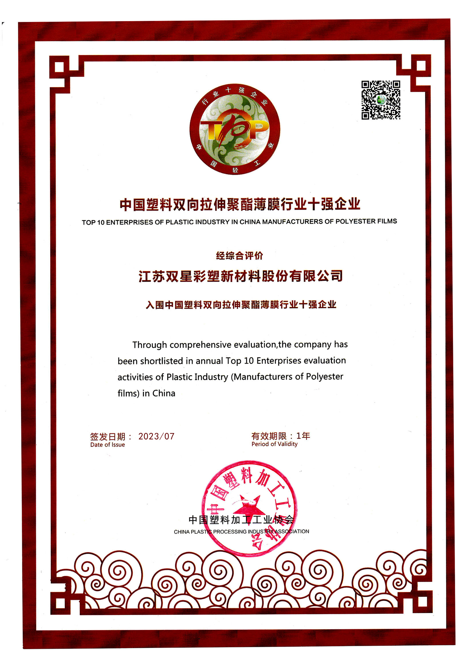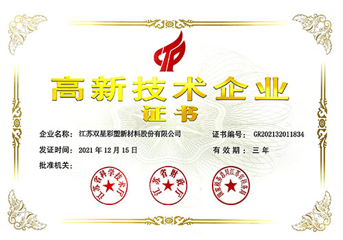 江蘇雙星彩塑新材料股份有限公司成立于1997年,是一家專業(yè)致力于高分子新材料行業(yè)產(chǎn)品技術(shù)研發(fā)、生產(chǎn)銷售、進(jìn)出口貿(mào)易為一體的國(guó)家高新技術(shù)企業(yè),多個(gè)生產(chǎn)廠區(qū),2011年實(shí)現(xiàn)深交所掛牌上市,登陸中國(guó)資本市場(chǎng),是中國(guó)雙向拉伸薄膜產(chǎn)業(yè)基地、國(guó)家火炬宿遷薄膜特色產(chǎn)業(yè)基地、中國(guó)輕工業(yè)塑料行業(yè)十強(qiáng)企業(yè)。產(chǎn)品暢銷全國(guó)三十多個(gè)省、市、自治區(qū),并出口到中東、歐美、東南亞、中國(guó)香港地區(qū)、中國(guó)臺(tái)灣地區(qū)等五十多個(gè)國(guó)家和地區(qū),技術(shù)水平居全國(guó)領(lǐng)先地位。企業(yè)擁有五大生產(chǎn)基地,主要生產(chǎn)聚酯功能膜材料、光學(xué)材料、新能源材料、信息材料、節(jié)能窗膜材料、熱收縮材料,是國(guó)內(nèi)大型新材料之一。